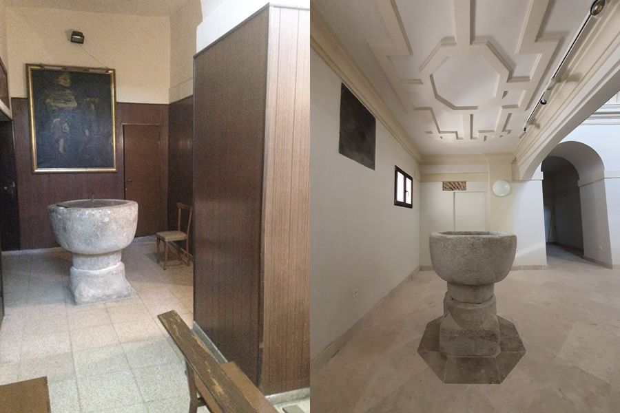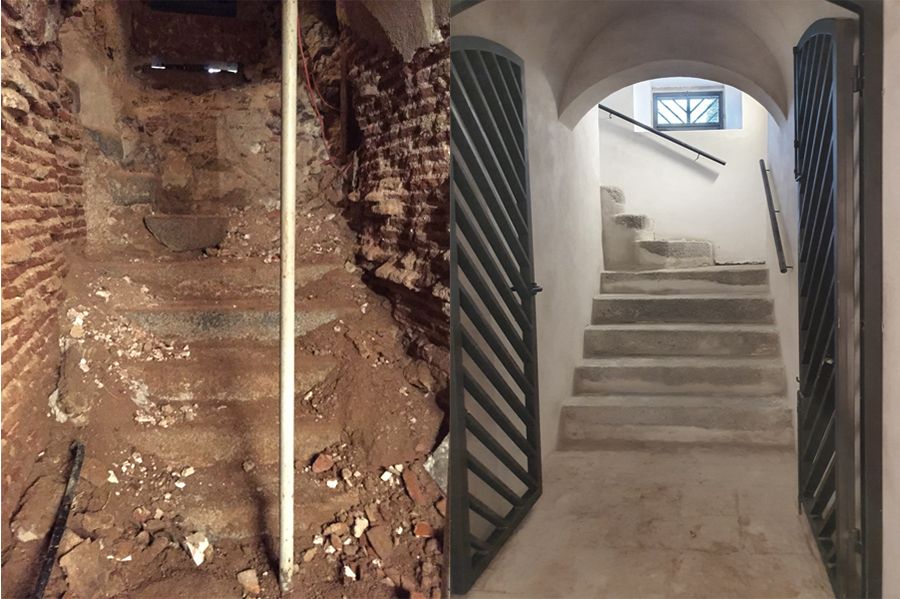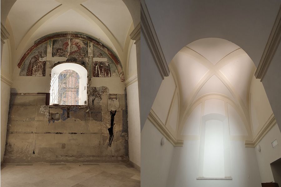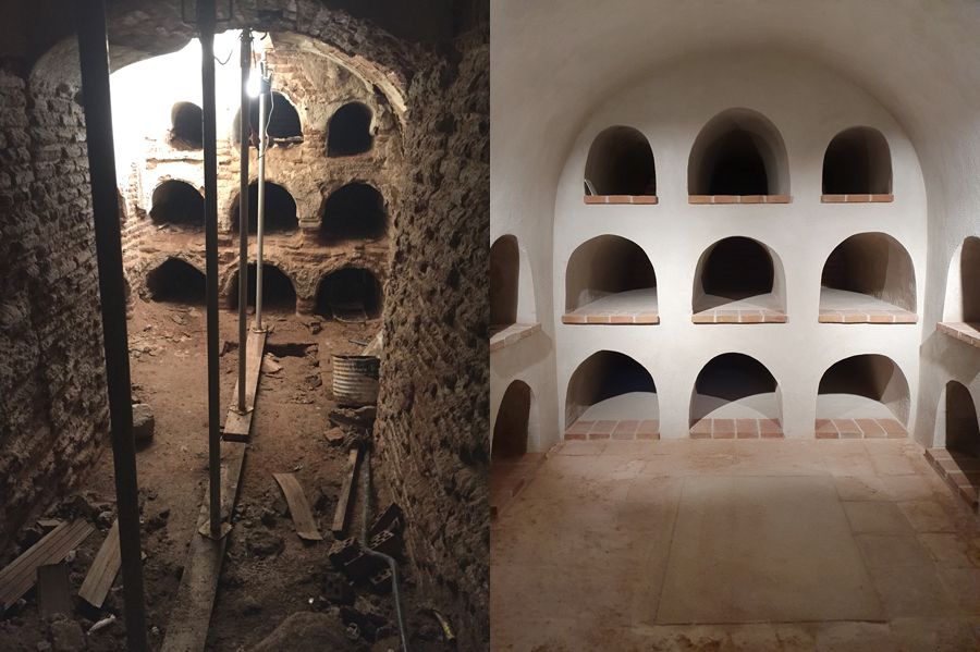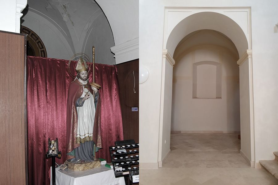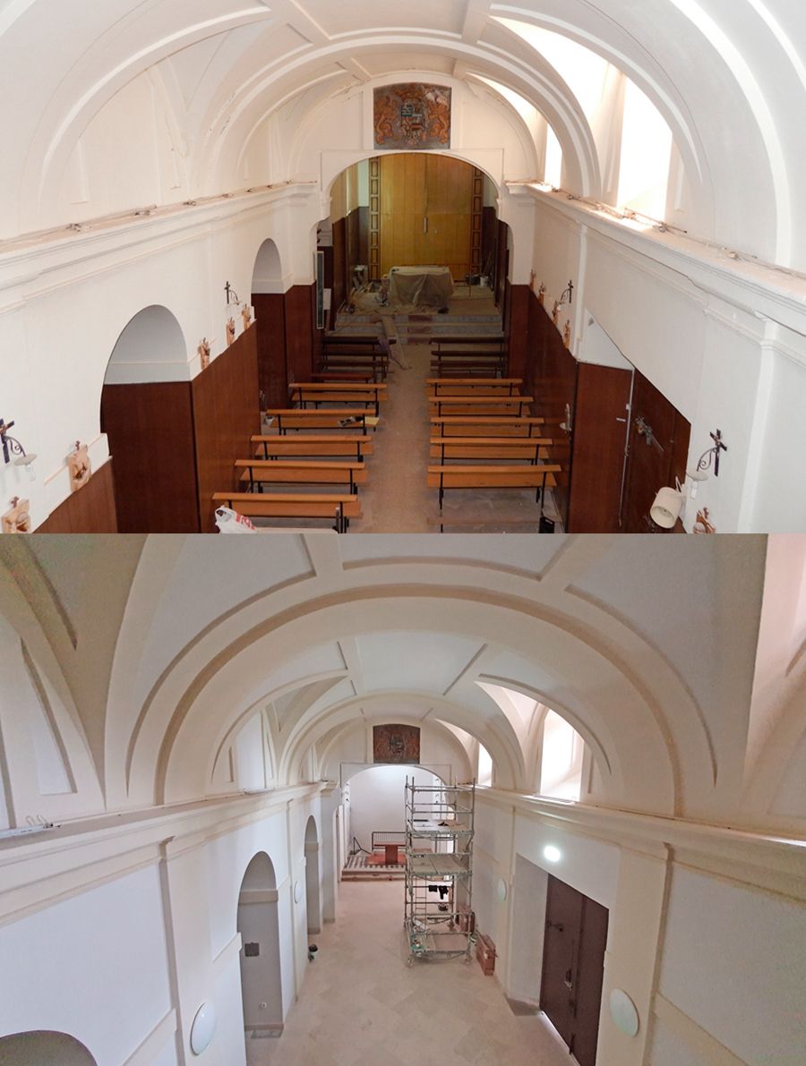 – Recuperación y puesta en valor de cripta con excavación arqueológica en escalera de acceso, pasillo de acceso, bóveda de cañón y nichos; limpieza manual, consolidación, recuperación de los paramentos y nichos, mejora de acceso para hacerla visitable.