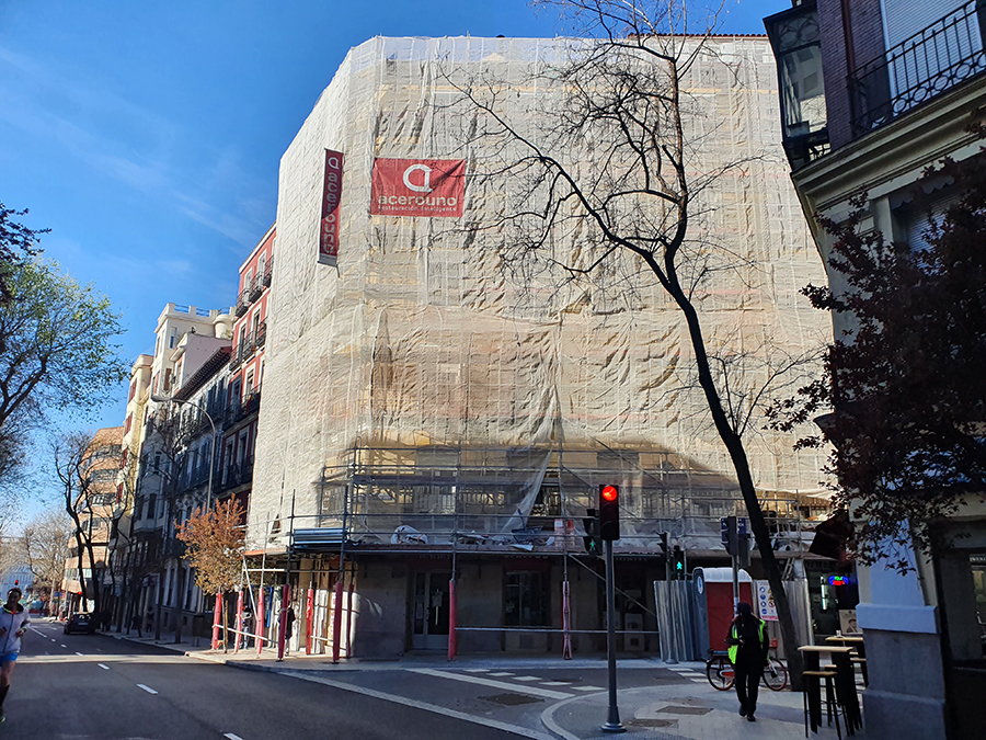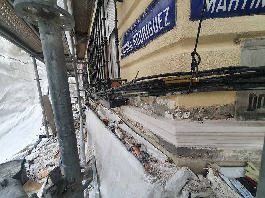 – Gestión de permisos, cortes de calle, instalación de andamio con paso inferior, coordinación con comercios de planta baja.