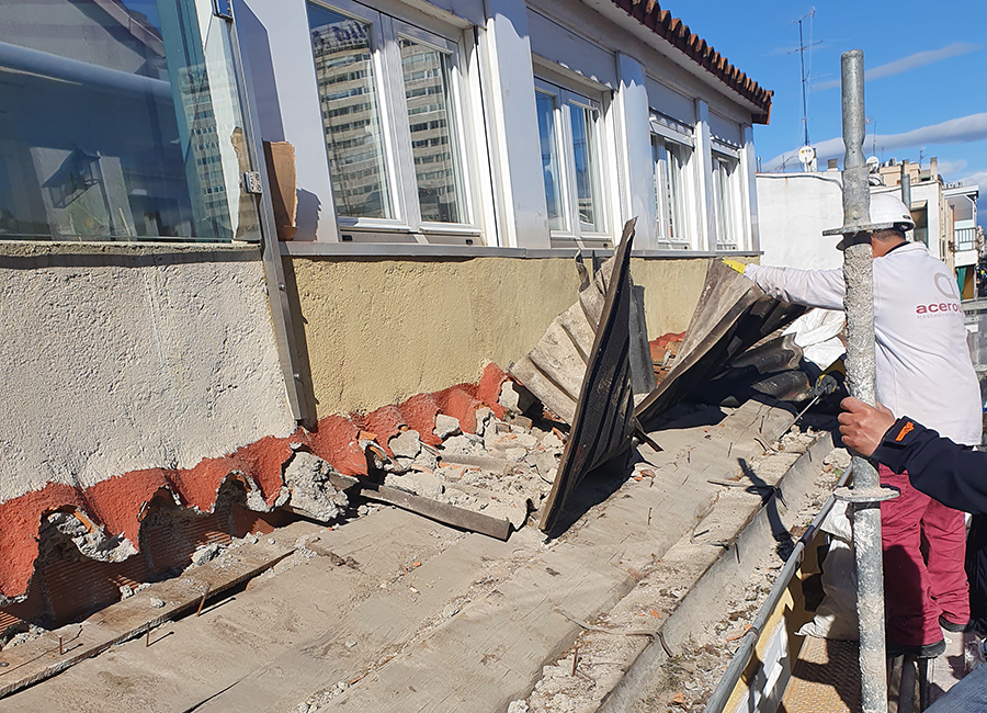 – Levantado de elementos de cubrición hasta dejar descubierto tablero de ripia existente.